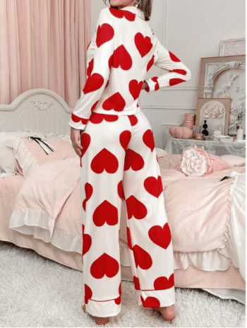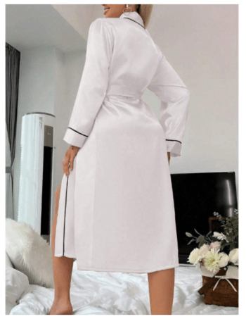 3d Lace Decor Heart Shaped Mesh Robe And Solid Color Satin Slip Dress, Pajama Set White Set