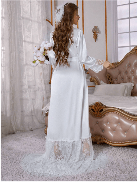 Women’s Extra Long Satin Nightgown – Elegant Lace Splicing Sleepwear